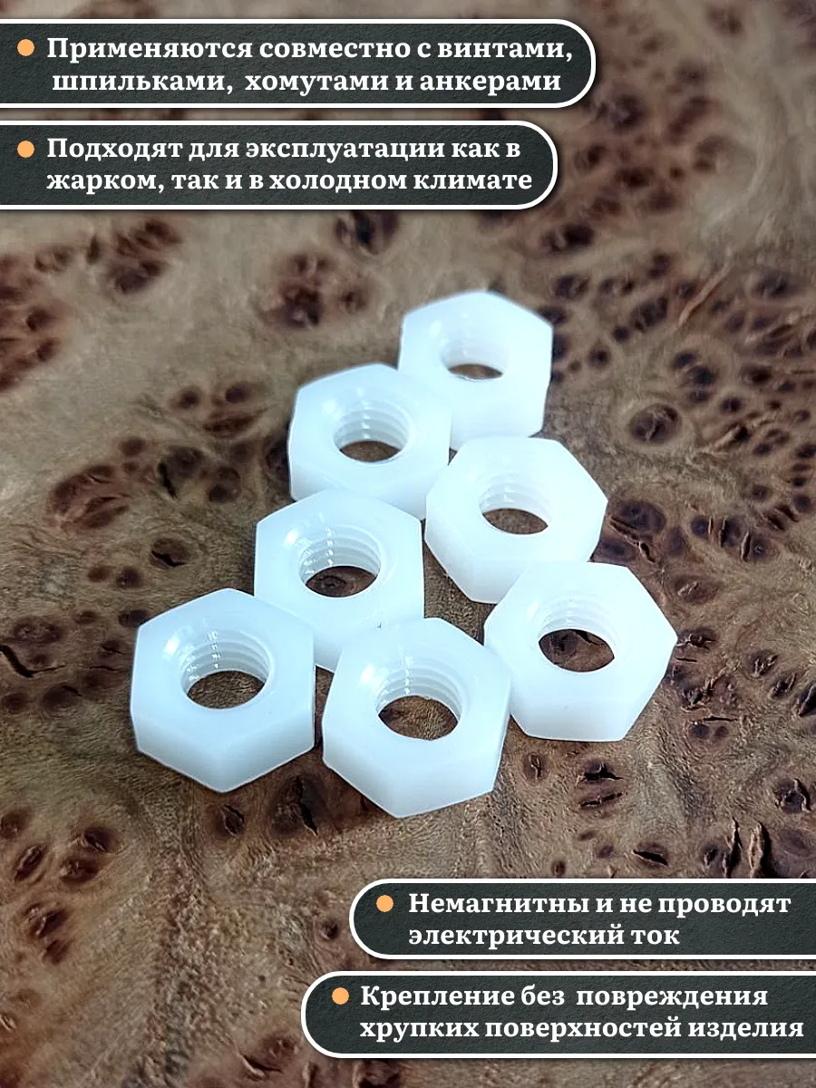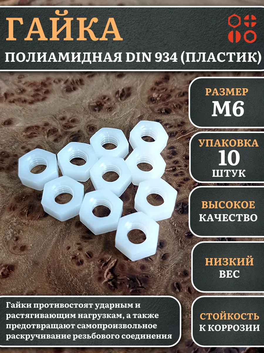 | Гайка полиамидная М6 DIN934 (пластик), 50 шт. | 2000000642994ф50 | 1 шт. |
