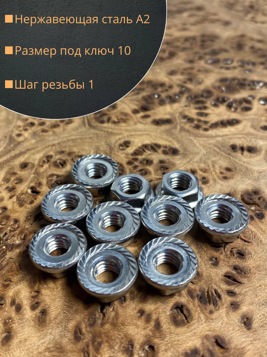 Гайка с фланцем нержавеющая М6 DIN 6923 (10 шт.)
