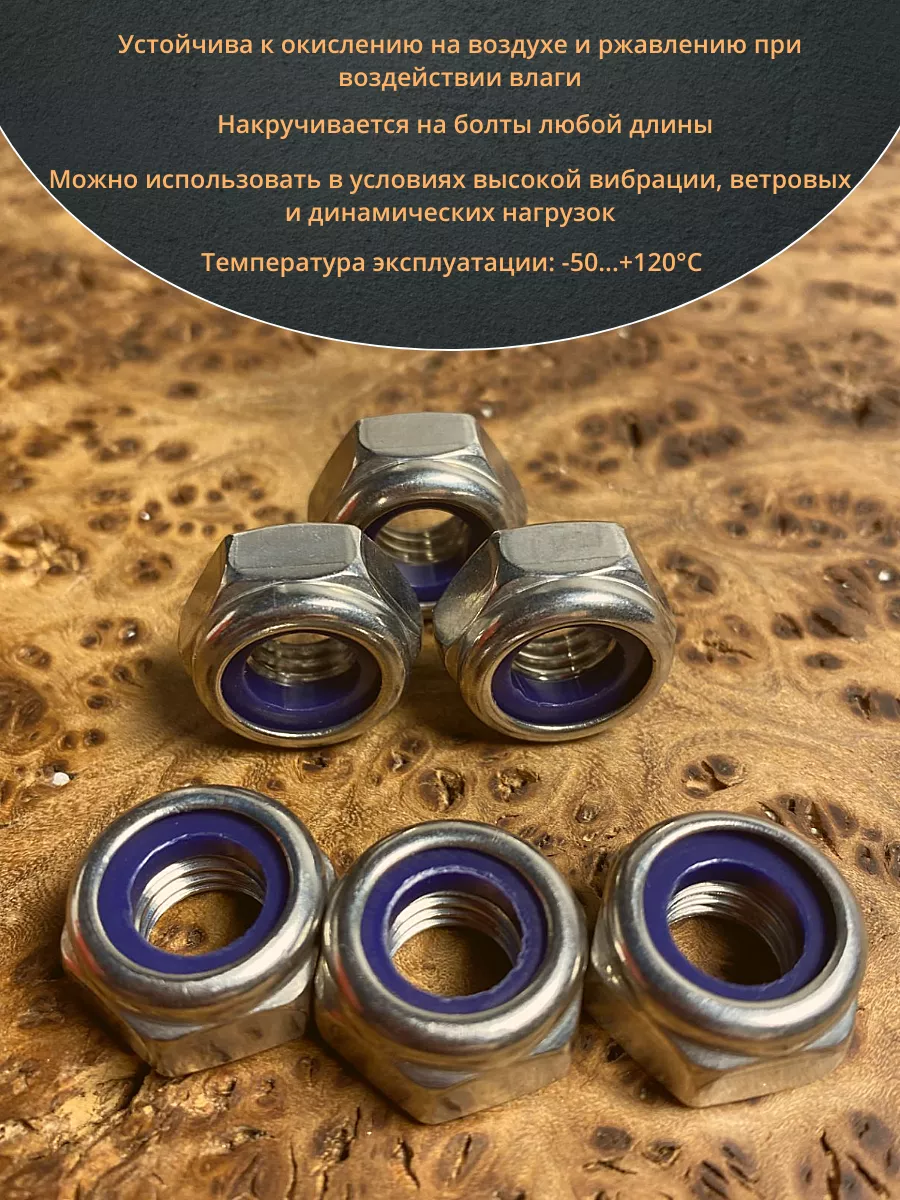 Гайка со стоп кольцом М14 нержавеющая, DIN985, 10шт.