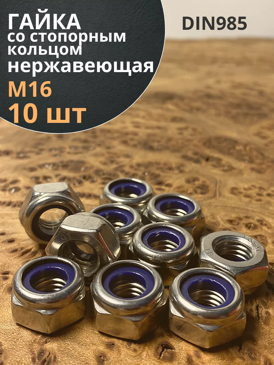 Гайка со стоп кольцом М16 нержавеющая, DIN985, 10шт.