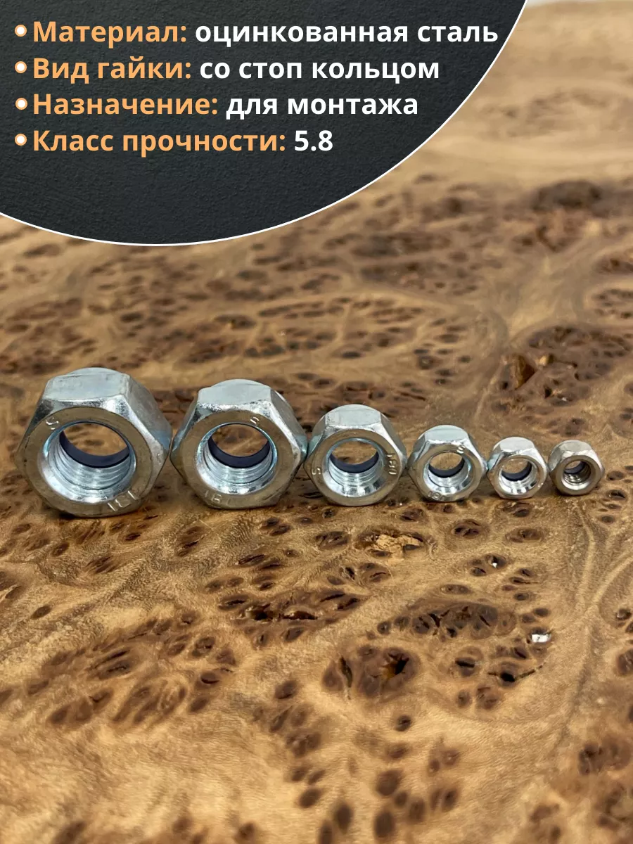 | Гайка со стоп кольцом М4,5,6,8,10,12 нержавеющая (по 50шт) | 11616 | 1 шт. |