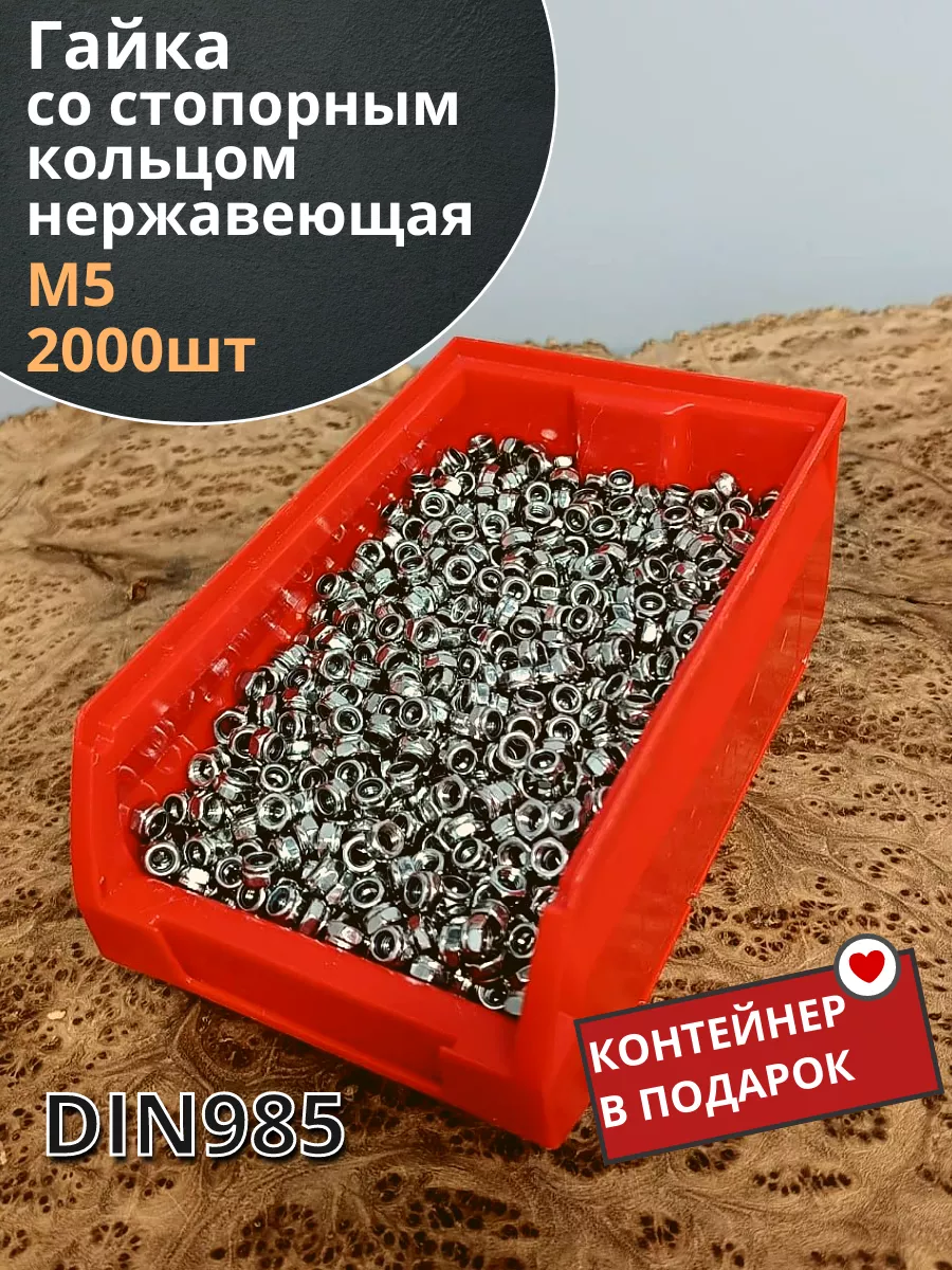 Гайка со стоп кольцом М5 нержавеющая,DIN985 2000шт контейнер