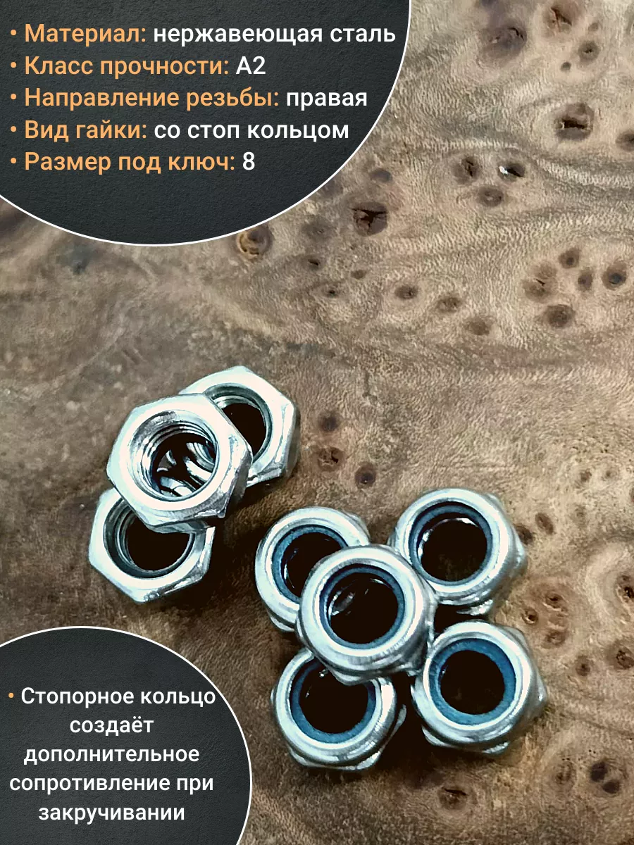 Стопорная самоконтрящаяся гайка DIN 985 с нейлоновым кольцом из нержавеющей стали А2 используется в машиностроении, приборостроении и прочих промышленных, производственных, строительных отраслях совместно с болтами, винтами или шпильками соответствующего размера резьбы.