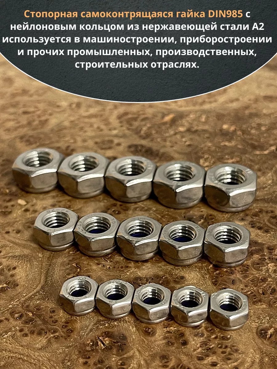 | Гайка со стоп кольцом М6,8,10 нержавеющая (набор по 10шт) | 11603 | 1 шт. |