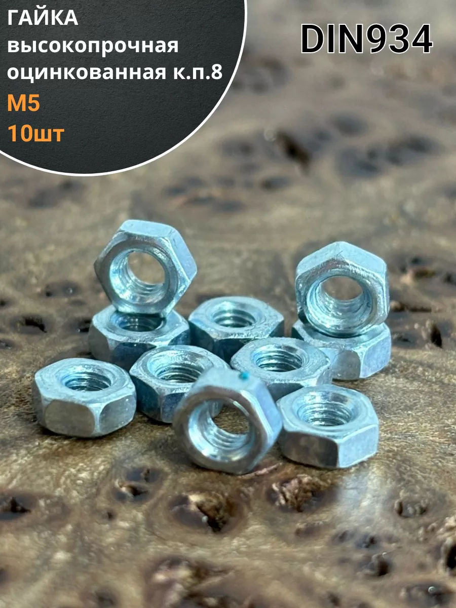Гайка высокопрочная М5, оцинкованная к.п.8 DIN934 (10 шт.)