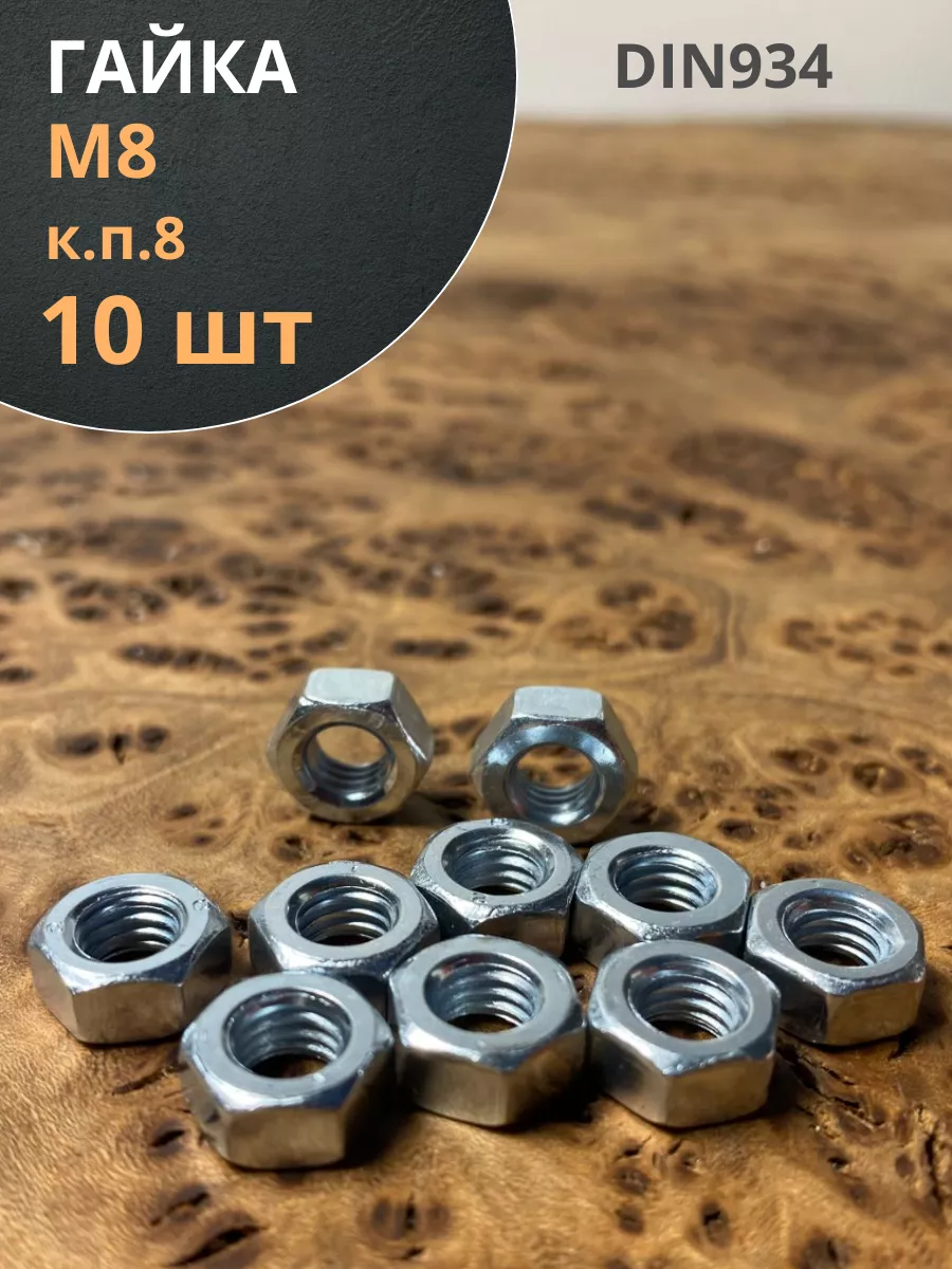 Гайка высокопрочная М8, оцинкованная к.п.8 DIN934 (10 шт.)