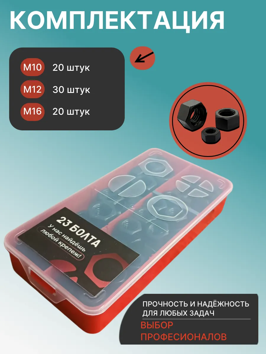 Гайки к.п.12.9 черные М10,12,16 в органайзере НАБОР 1