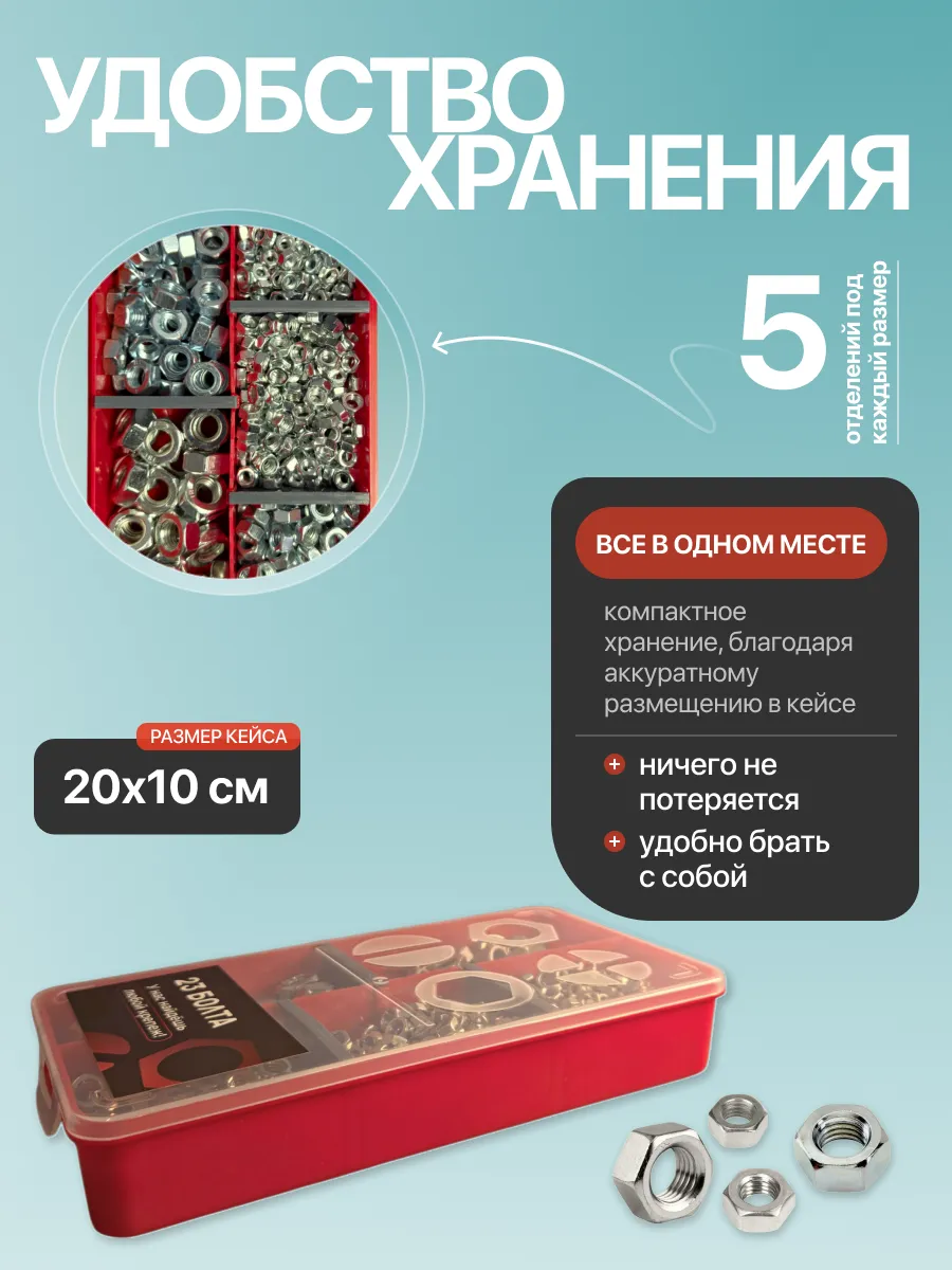 Гайки нержавеющие DIN934 М4,5,6,8,10 органайзер НАБОР 1