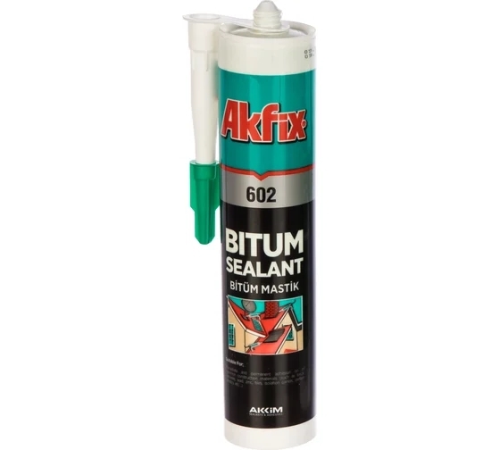 Битумный герметик для кровли Akfix 602, черный, 310 мл AB003 предназначен для водостойкого склеивания кровельных материалов, герметизации кровельных соединений, стыков, щелей и трещин, а также для монтажа водосточных труб и лотков. После отверждения образует постоянно пластичную массу, не теряющую герметичность при подвижках материалов в следствие температурных перепадов.