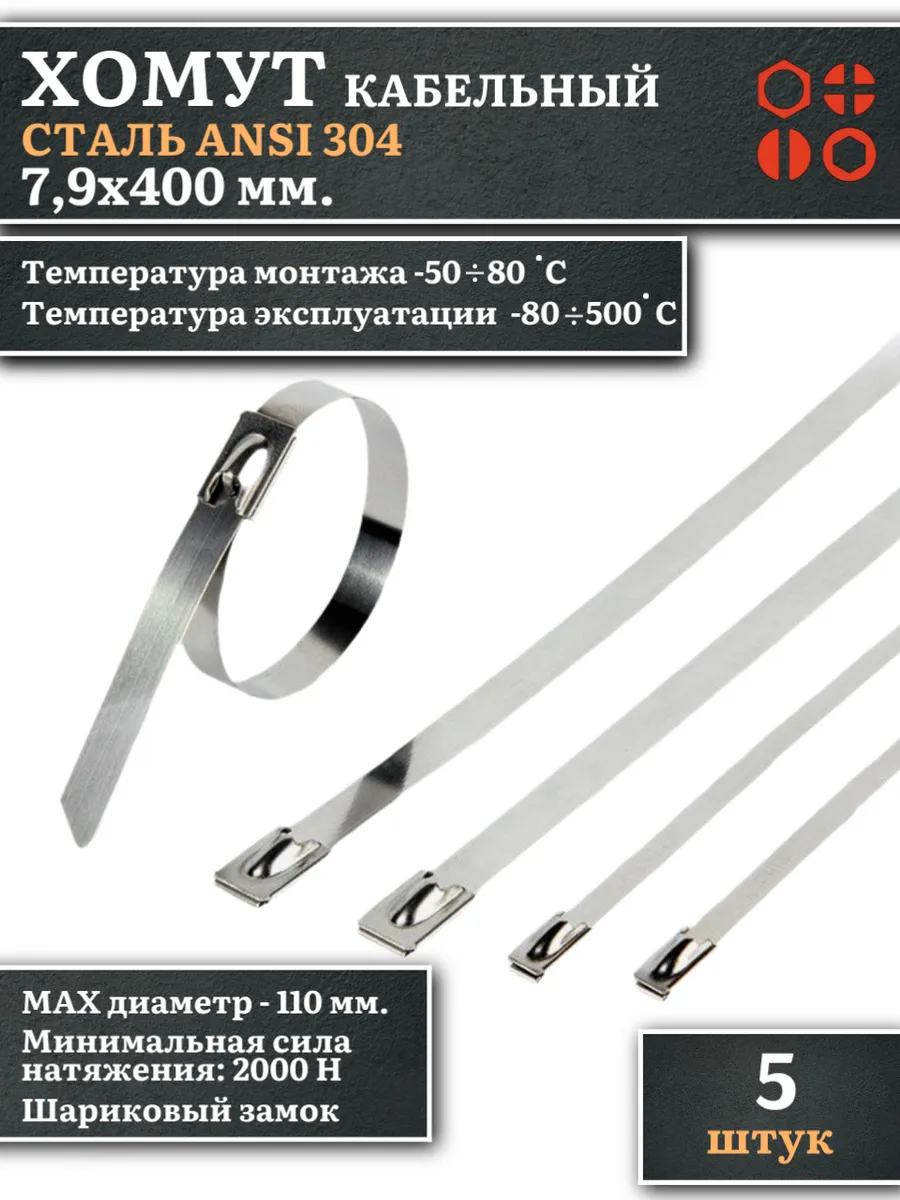 Хомут кабельный 7,9х400 сталь ANSI 304 ,5 шт.