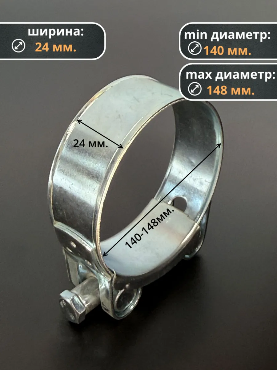 Хомут одноболтовый силовой металл 140-148 мм, 2 шт.