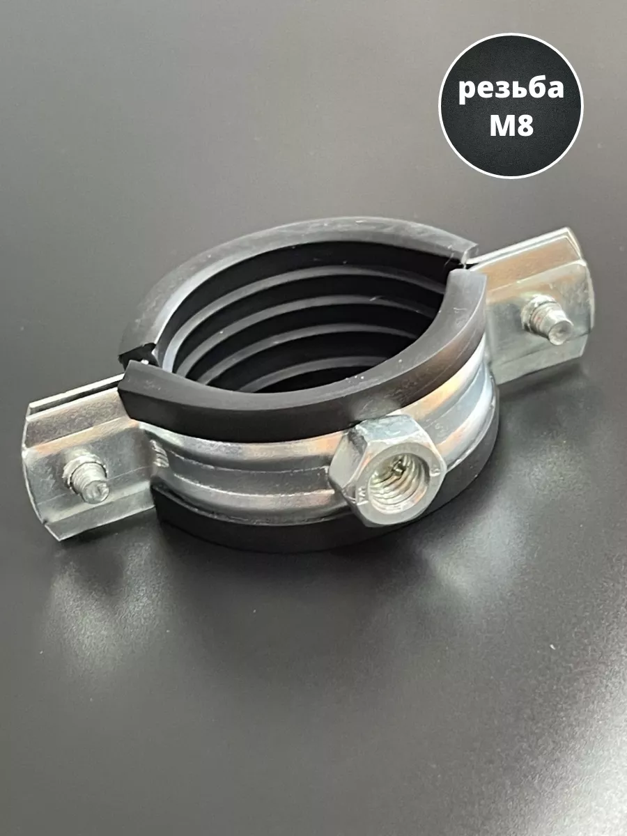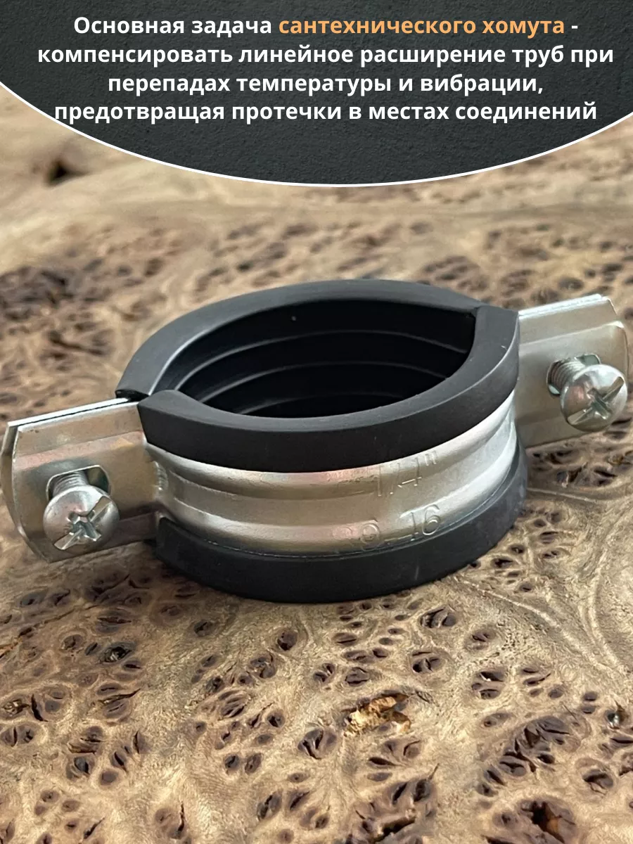 Хомут изготавливается из стали, прокладка - из высококачественной резины. Все металлические детали в обязательном порядке оцинковываются. С помощью трубного хомута трубы могут фиксироваться на полу, стенах или потолке. Данный вид хомута предназначен для надежного крепежа трубопроводов. Используется в сантехническом деле. Пользуется большой популярностью, за счет гарантии надежной фиксации. Материал основания: древесина, металл, бетон, кирпич