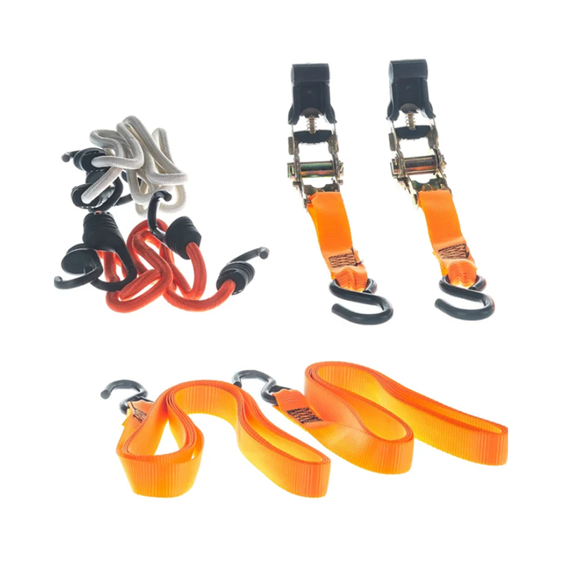 Набор стяжек и резинок для фиксации грузов Stels используется для фиксации грузов и будет полезен в автопутешествии. В комплекте ремни с храповыми механизмами, а также резинки разной длины с крюками. Разрывная нагрузка ремней составляет 680 кг, а эластичных стяжек — 50 кг, поэтому они надежно фиксируют предметы различных габаритов, предотвращая их смещение во время перевозки.