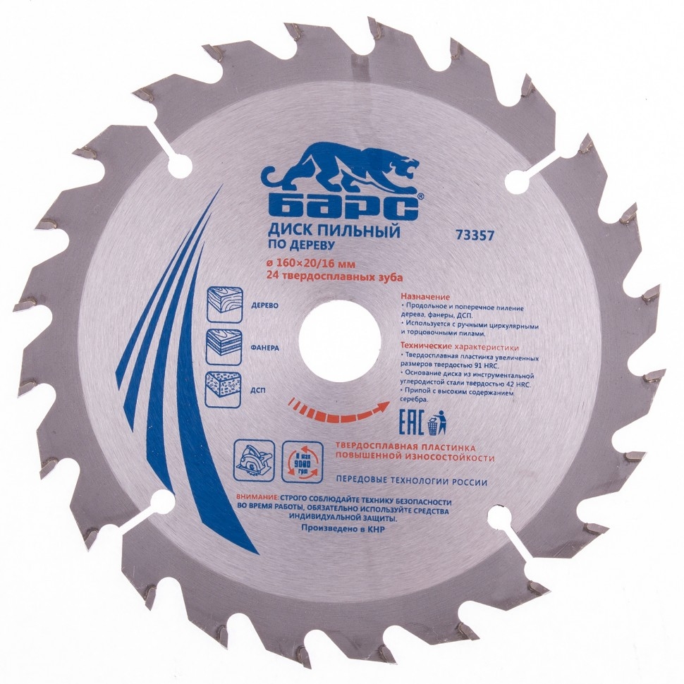 | Диск пильный по дереву 190х20 мм 24 зуба + кольцо 20/16 мм Барс | 73367 | 1 шт. |