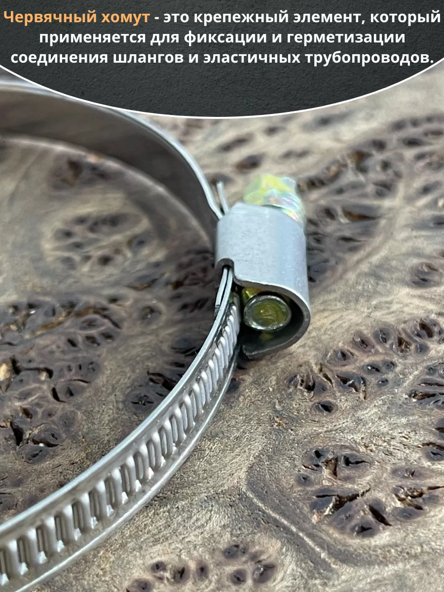 Хомут червячный используется для соединения, крепления или фиксации жестких и гибких трубопроводов, шлангов и патрубков. Изготавливается из стали в виде ленты со специальным замком. Одна половина ленты гладкая, а вторая рифленая, что гарантирует надежную фиксацию. Срок службы данного изделия напрямую зависит от правильного выбора соединения и степени подвижности.