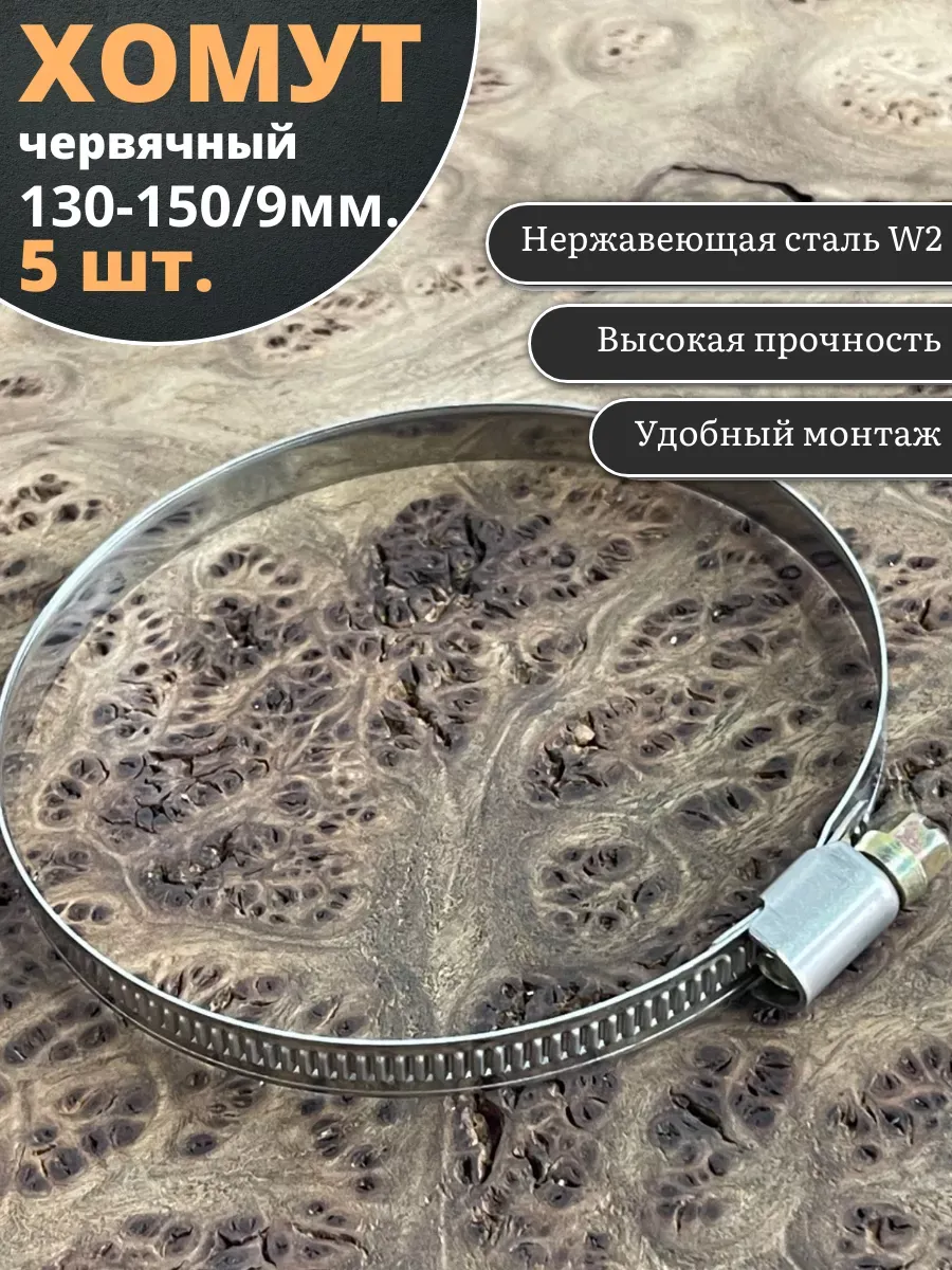 Хомут стяжка червячный 130-150/9 W2 нержавейка, 5 шт.