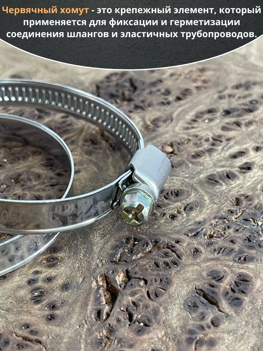 Хомут червячный используется для соединения, крепления или фиксации жестких и гибких трубопроводов, шлангов и патрубков. Изготавливается из стали в виде ленты со специальным замком. Одна половина ленты гладкая, а вторая рифленая, что гарантирует надежную фиксацию. Срок службы данного изделия напрямую зависит от правильного выбора соединения и степени подвижности.