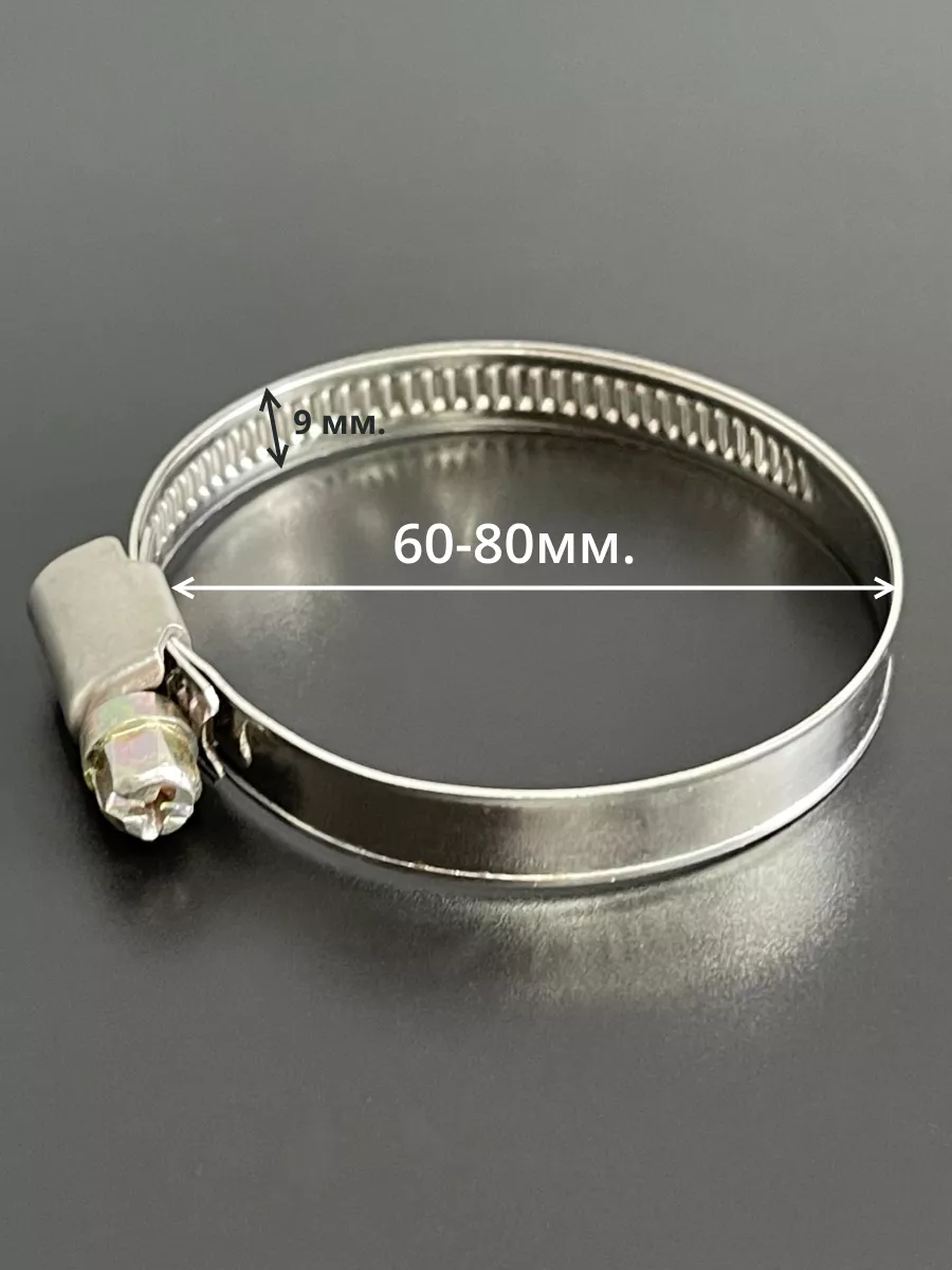 Хомут стяжка червячный 60-80/9 W2 нержавейка, 5 шт.