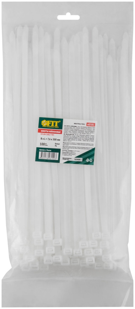 | Хомуты нейлоновые белые для проводов 300х7,6 мм 100 шт. | 60381 | 1 шт. |