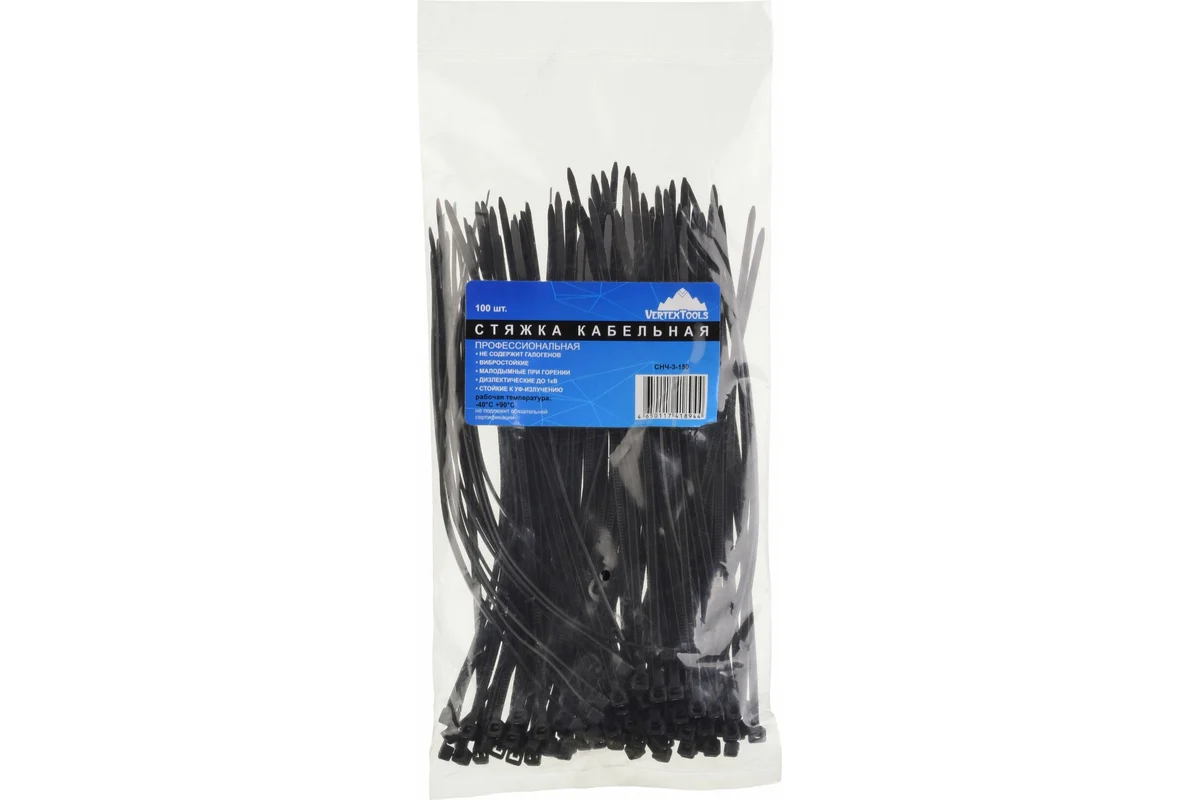 | Хомуты нейлоновые черные 4х300 мм 100 шт.VERTEXTOOLS | СНЧ-4-300 | 1 шт. |