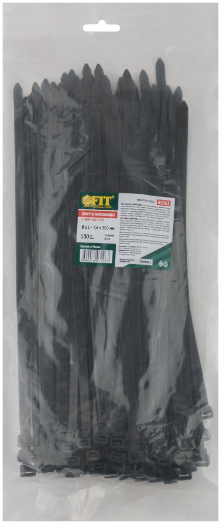 | Хомуты нейлоновые черные для проводов 300х7,6 мм 100 шт. | 60361 | 1 шт. |