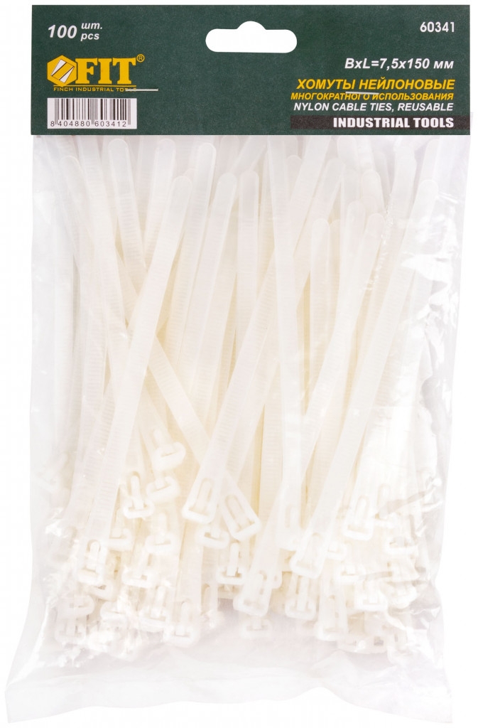 | Хомуты нейлоновые многоразовые белые для проводов 150х7,5 мм 100 шт. | 60341 | 1 шт. |