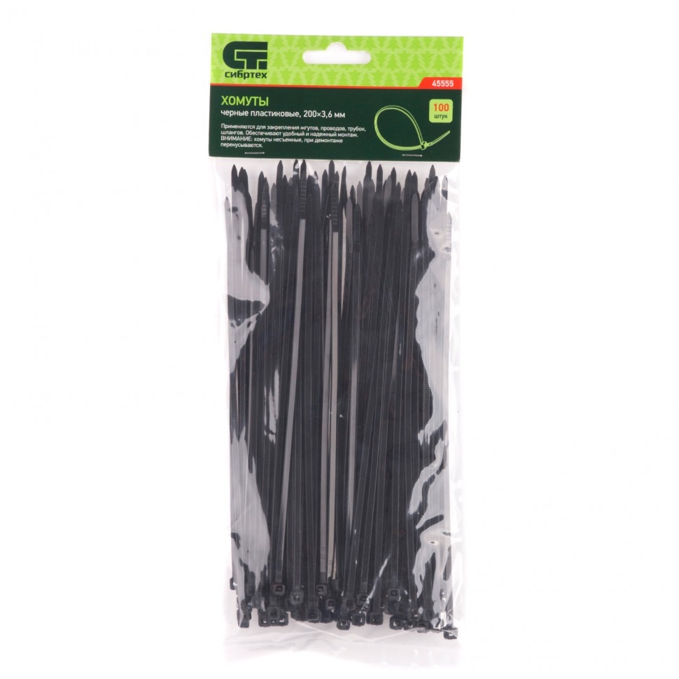 | Хомуты пластиковые черные 200х3,6 мм 100 шт. Сибртех | 45555 | 1 шт. |