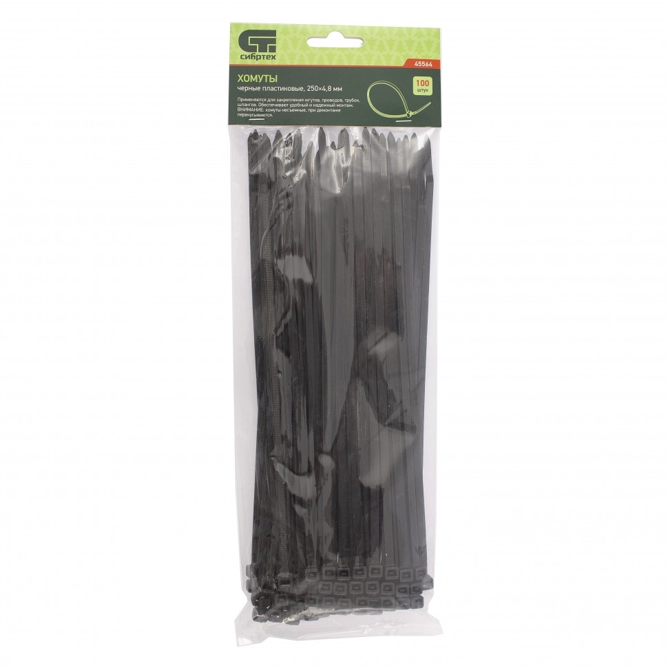 | Хомуты пластиковые черные 250х4,8 мм 100 шт. Сибртех | 45564 | 1 шт. |