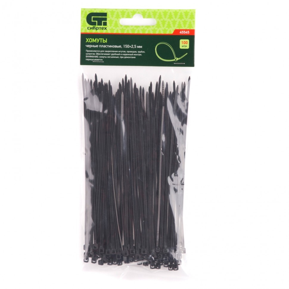 | Хомуты пластиковые черные 150х2,5 мм 100 шт. Сибртех | 45545 | 1 шт. |