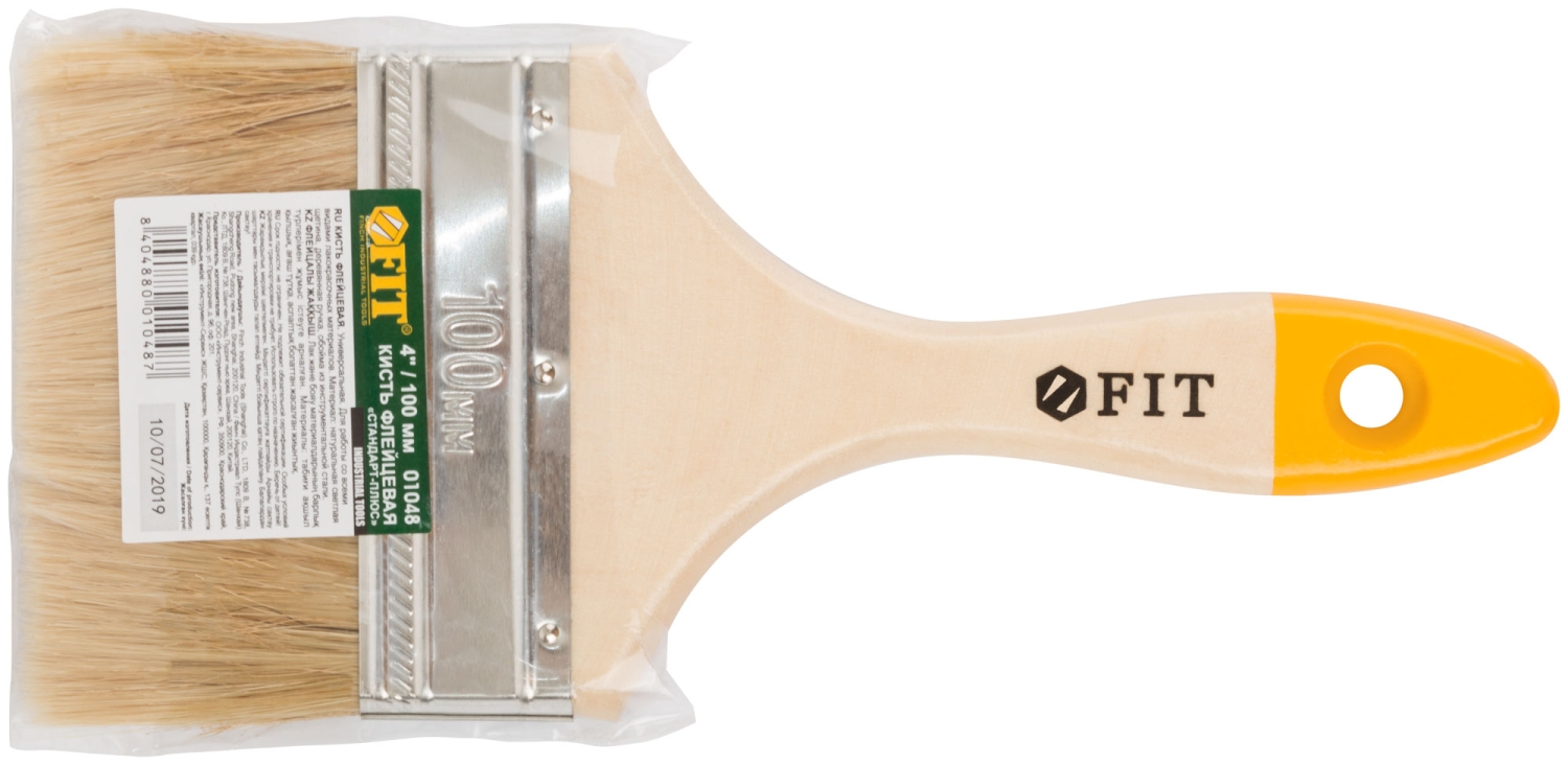 Кисть флейцевая Стандарт-Плюс, натур.светл.щетина, дерев.ручка 4" 100 мм