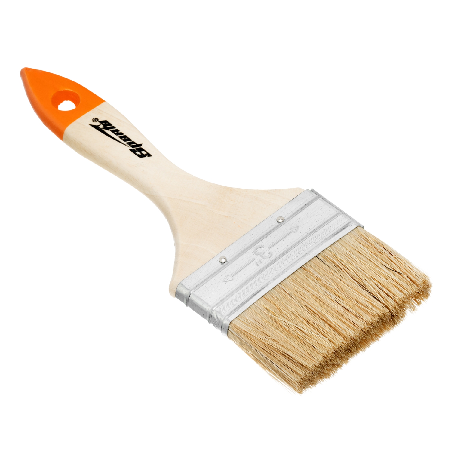 Плоская кисть Sparta Slimline 824405 шириной 3 дюйма (75 мм), с натуральной щетиной и деревянной ручкой, используется для проведения несложных малярных работ. Натуральная щетина не разрушается под воздействием агрессивных веществ, поэтому кисть можно применять для работ с масляными красками, а также с составами на основе растворителей.