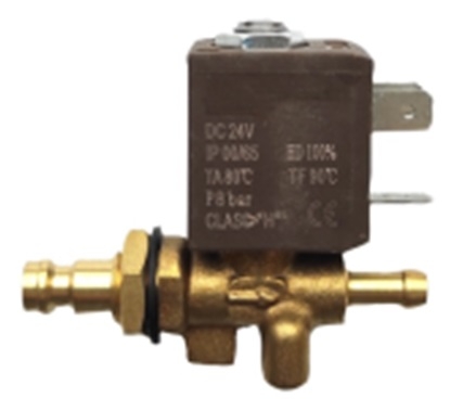 Электромагнитный клапан, предназначен для автоматического управления подачей газа. Включение электромагнитного клапана осуществляется путем нажатия пусковой кнопкой горелки полуавтомата, что обеспечивает продувку газового канала и подготовку защитной среды перед зажиганием сварочной дуги, а также сохранение защитной среды после гашения дуги до полного остывания металла. Напряжение питания 24В.
