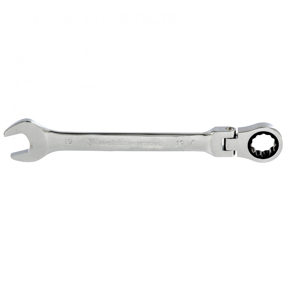 Ключ комбинированный трещоточный шарнирный зеркальный хром 19 мм CrV Matrix 14871 1 шт.