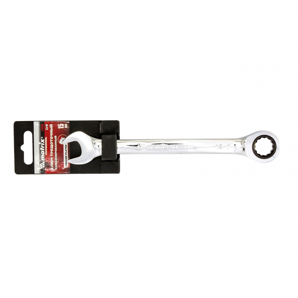 Ключ комбинированный трещоточный зеркальный хром 15 мм CrV Matrix