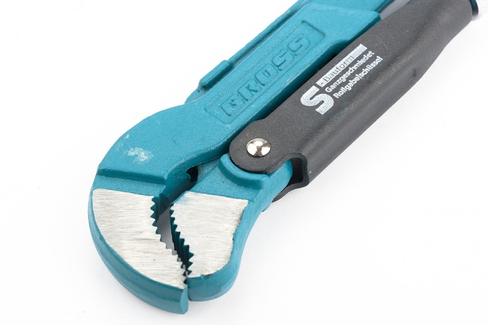 Цельнокованый трубный рычажный ключ Gross №1 15611, CrV, тип - «S», рассчитан на бытовое и профессиональное использование для захвата и вращения труб и соединительных деталей диаметром 1 дюйм. Он легко справляется с большим объемом работ, поэтому пригодится сотрудникам автосервиса, коммунальщикам и другим службам. Ключ S-образной формы обеспечивает надежный хват плоских и объемных деталей, а также позволяет работать в труднодоступных местах. А рычажный механизм облегчает работу, т.к. требует меньше усилий от оператора. Преимущества Ключ выполнен из хромованадиевой стали, что является гарантией его качества, прочности и высокого ресурса. Благодаря порошковому покрытию ключ надежно защищен от коррозии. Регулировочный механизм оснащен стопорным кольцом, которое предотвращает случайное откручивание гайки. Надежность фиксации достигается за счет зубьев, наклоненных в противоположную от направления вращения сторону, это обеспечивает самоблокируемый захват рабочих элементов. Губки обладают твердостью 57-60 HRC, т.