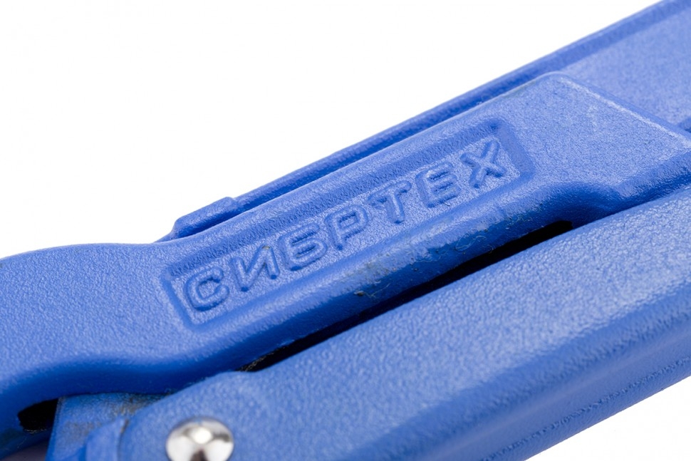 Трубный рычажный ключ Сибртех №3 15744 с изогнутыми губками служит для проворачивания и фиксации труб и других деталей диаметром до 2 дюймов, со специальными гранями и без них. Универсальный ключ пригодится дома, в гараже, на производстве. Рычажный механизм обеспечивает эффективность работы за счет высокого прижимного усилия. Преимущества Надежность конструкции ключа обеспечивает углеродистая сталь 45, которая применяется при его изготовлении. Твердость губок 50 HRC гарантирует их высокий рабочий ресурс. Ключ легко настроить под размер детали благодаря регулируемому механизму с гайкой. Насечки на губках не допускают проскальзывания деталей, обеспечивая их надежную фиксацию. Широкие губки позволяют добиться увеличенной площади контакта с деталью.