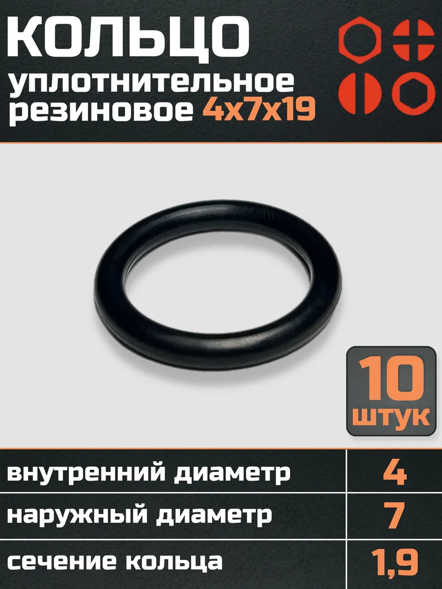 Кольцо уплотнительное 4 мм ( 4х7х19 ) резиновое, 10 шт.