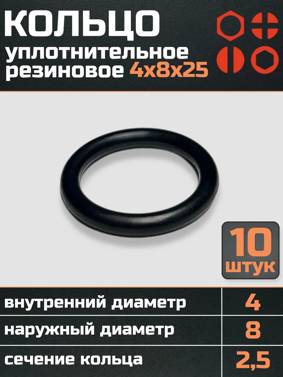 Кольцо уплотнительное 4 мм ( 4х8х25 ) резиновое, 10 шт.