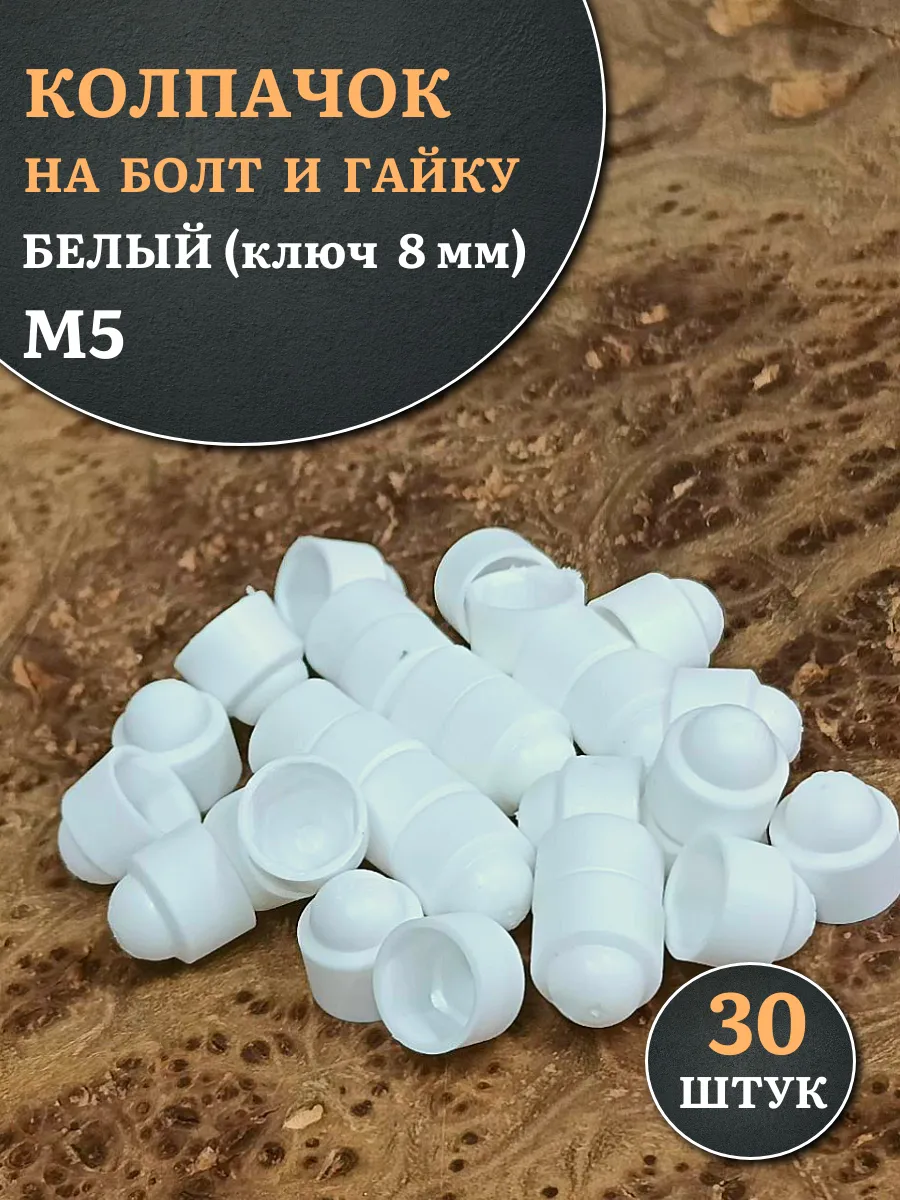 Колпачок на болт и гайку белый M5 (ключ 8 мм), 30 шт.