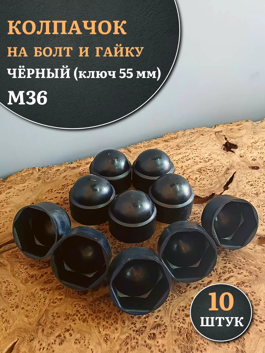 Колпачок на болт и гайку черный M36 (ключ 55 мм), 10 шт.