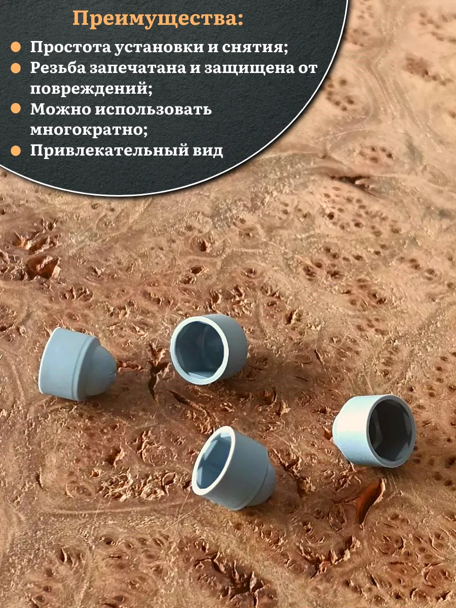 Колпачок на болт и гайку серый M6 (ключ 10 мм), 10 шт.