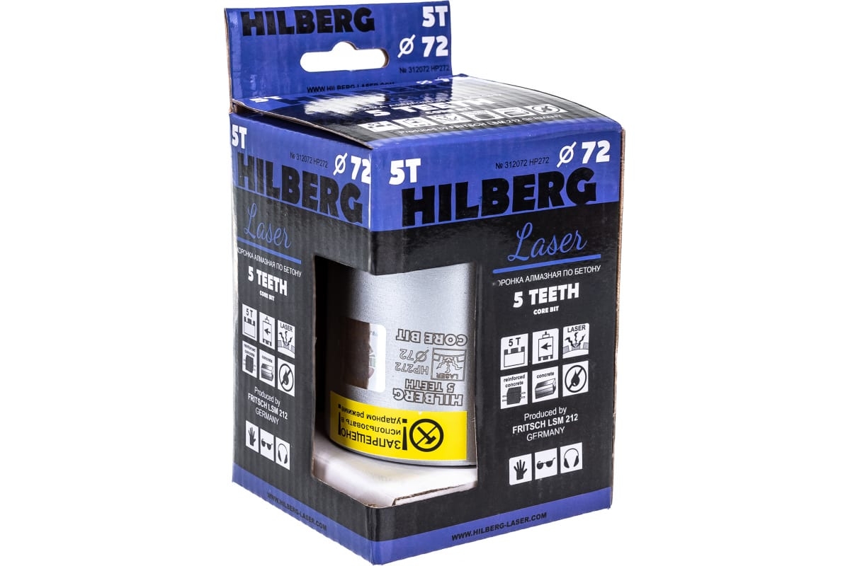 Коронка по бетону, алмазная, Hilberg Laser Five Teeht 72 мм