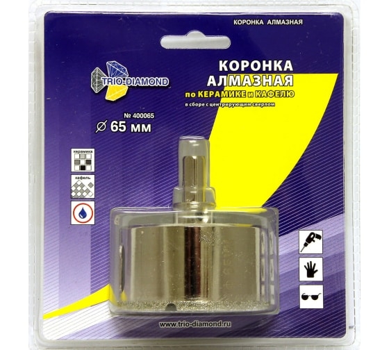 Коронка по керамике и кафелю, алмазная с центрир.сверлом 65 мм