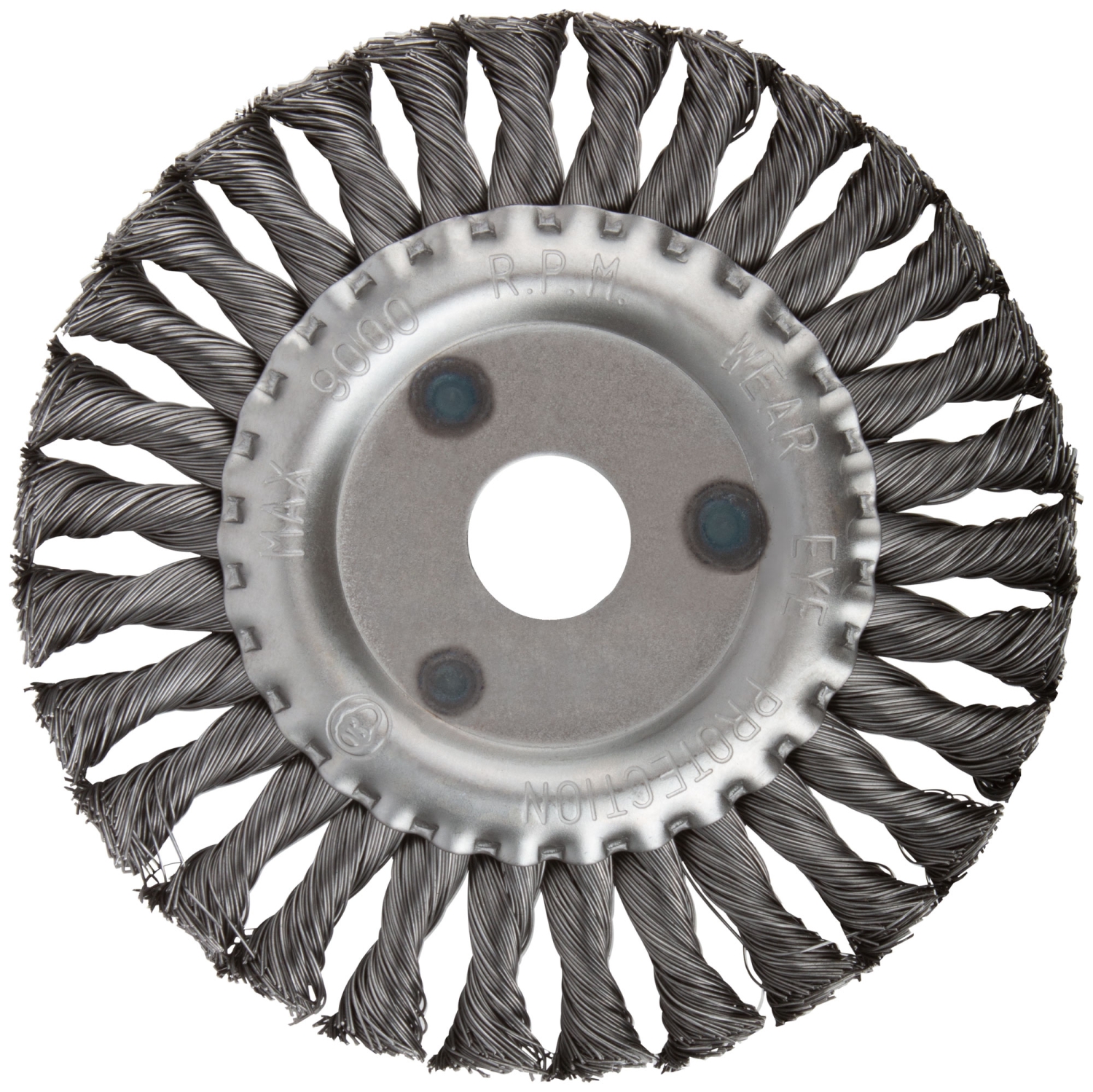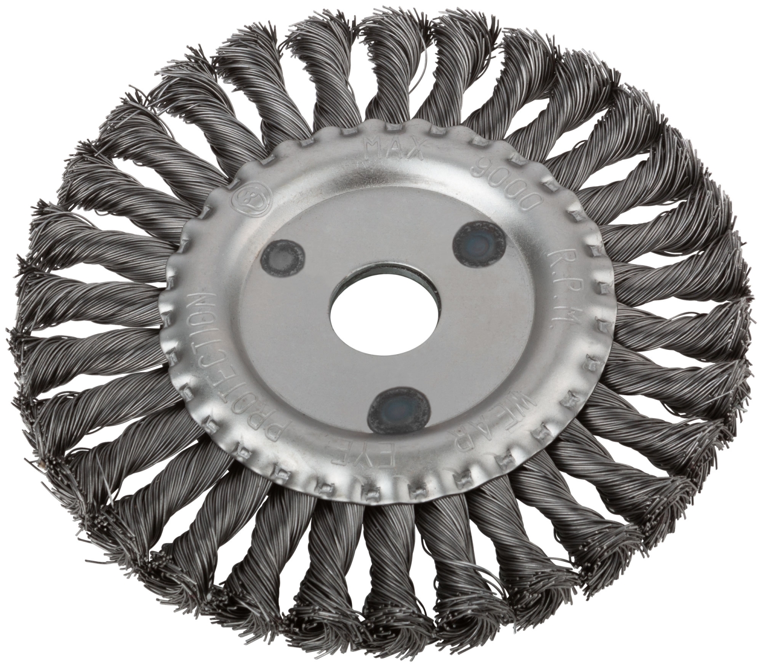 Тип «колесо». Для УШМ. Витая стальная проволока. Посадочный диаметр – 22,2 мм. Упаковка: картонная коробка.
