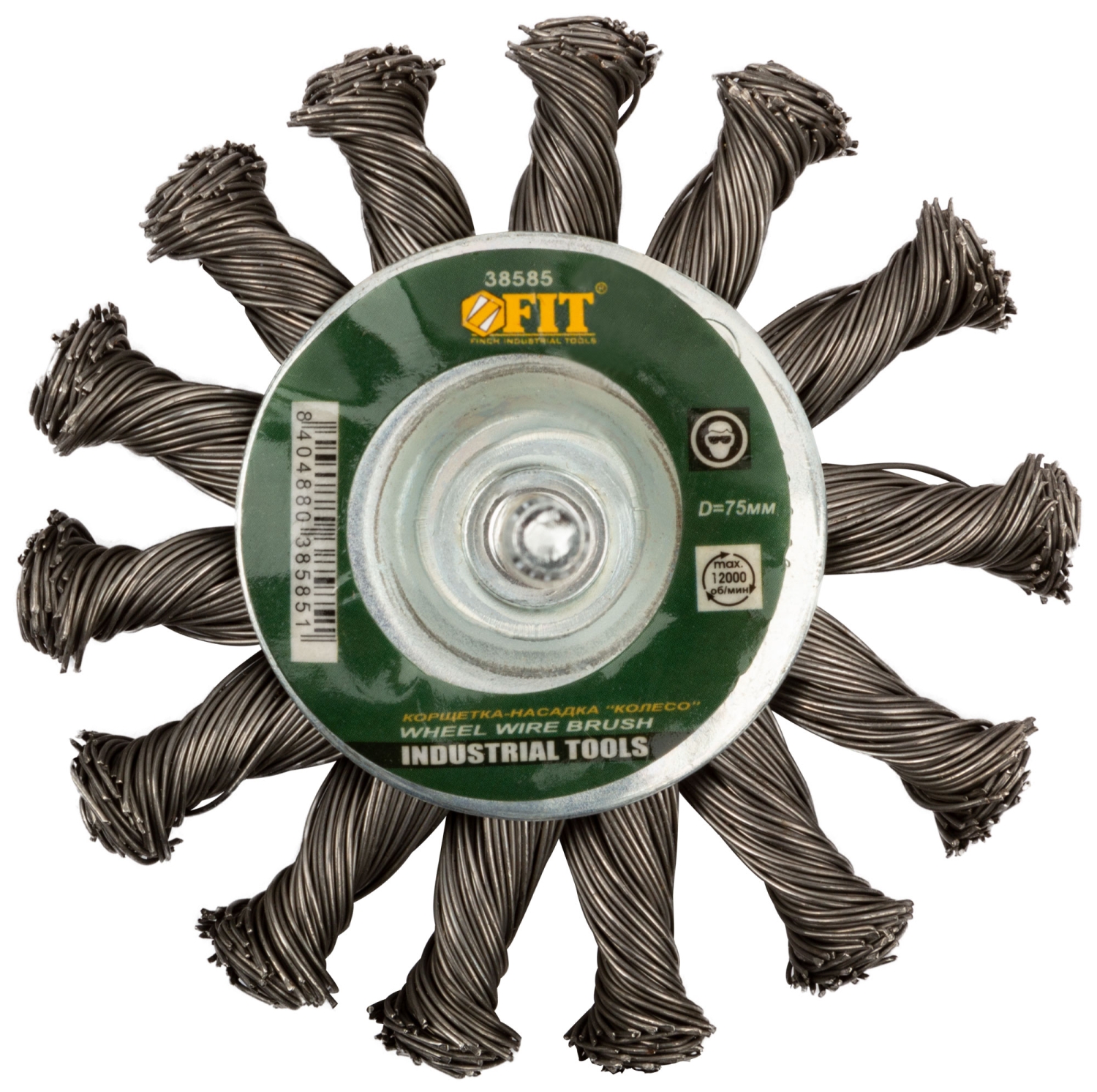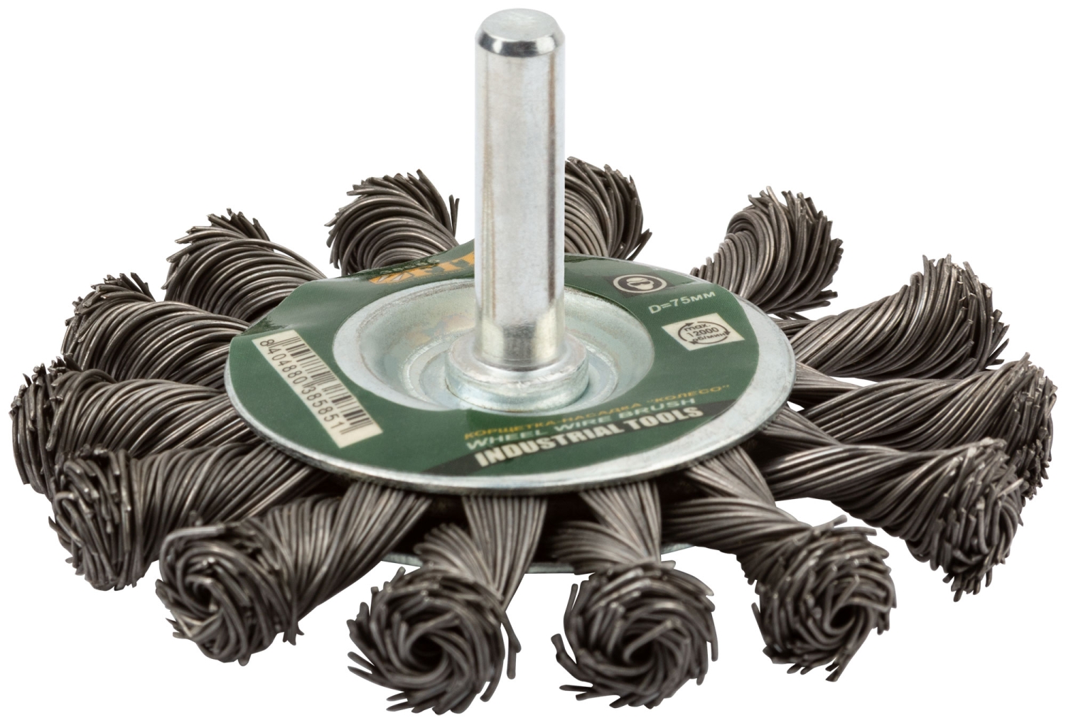 Корщетка-колесо, со штифтом, витая стальная проволока 75 мм