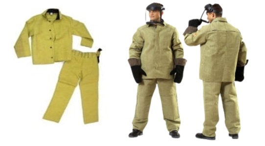 Комплектность костюм (куртка+брюки). Цвет изделия хаки. Наименование материала брезент. Плотность материала 480 г/м². Защитные свойства от искр, брызг, окалины металла, от общих производственных загрязнений, от механических воздействий, огнестойкая пропитка.