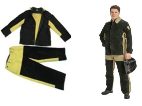 Костюм сварщика комбинированный выполнен из огнестойкого брезента, дополненного накладками из кожевенного спилка. Состоит из куртки и брюк. Защищает от высоких температур, расплавленных брызг и искр во время проведения сварочных работ. Куртка с потайной застежкой. Ширину рукавов можно регулировать с помощью хлястиков.