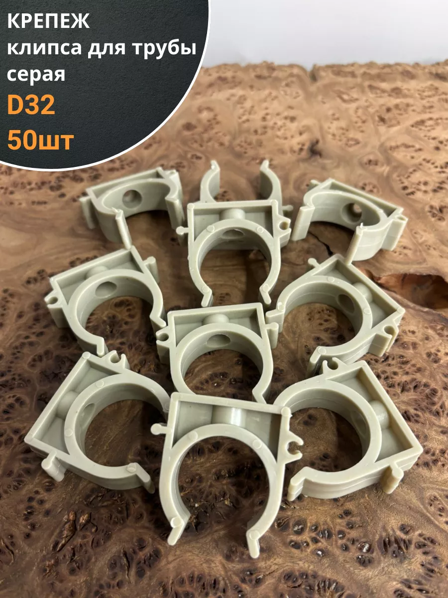 Крепеж клипса для трубы d 32 серая , 50 шт.