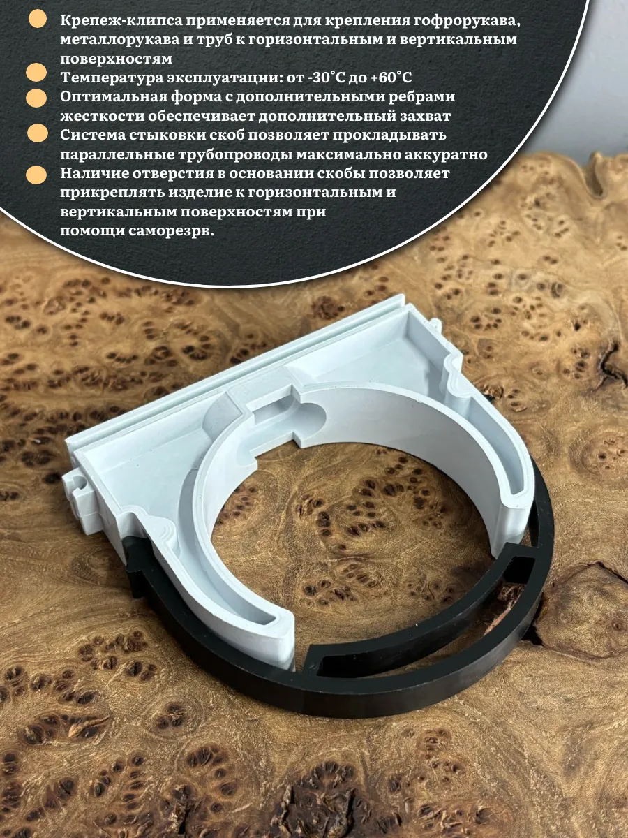 Крепеж клипса для трубы гофры с фиксатором d 63 мм, 4 шт.