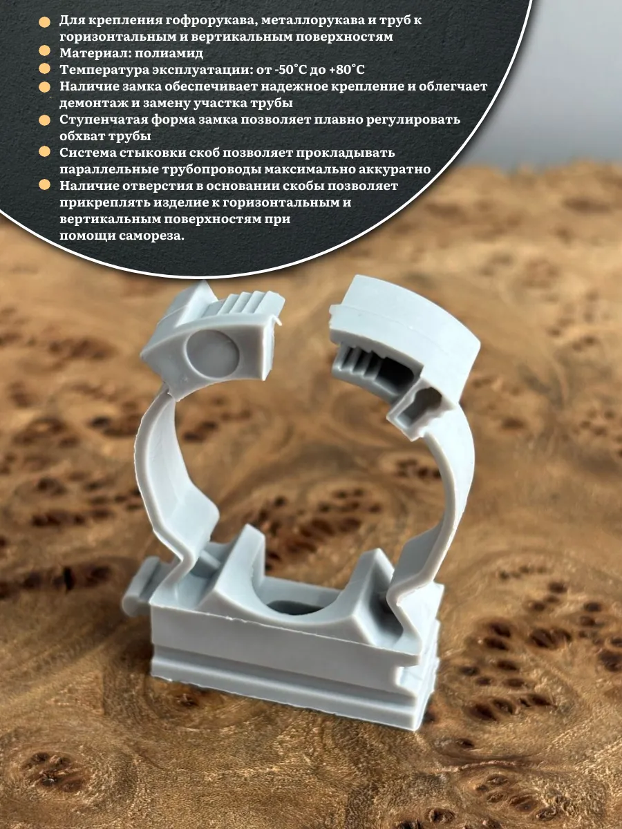 Крепеж клипса для трубы гофры с замком d 16 мм, 50 шт.